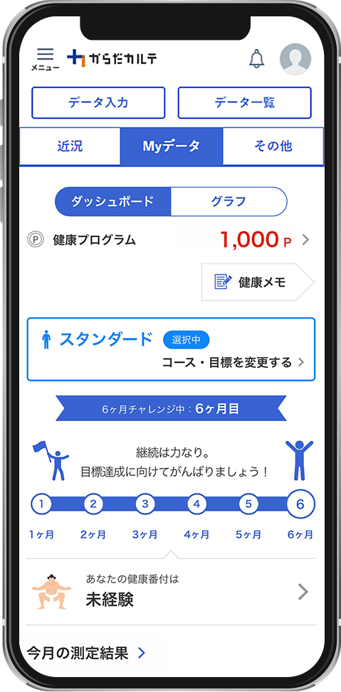 ↑スマートフォンでデジタルポイントを管理 ↑計測データを管理